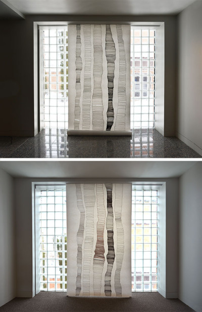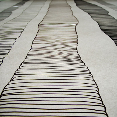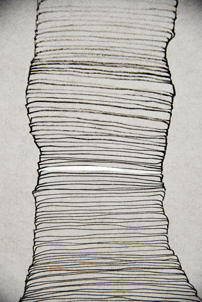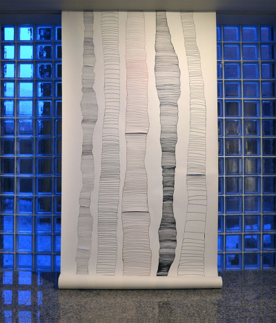 L'exploration a généré une oeuvre dessinée (sur 2 étages), une installation sculpturale et un écrit sur le processus de création https://www.karolebiron.com/ecrits. Le dessin, à l'échelle du corps, accumule les traits et les interstices en des sortes de stalagmites non contrôlés. Les oeuvres sont un regard sur le texte et son interprétation.