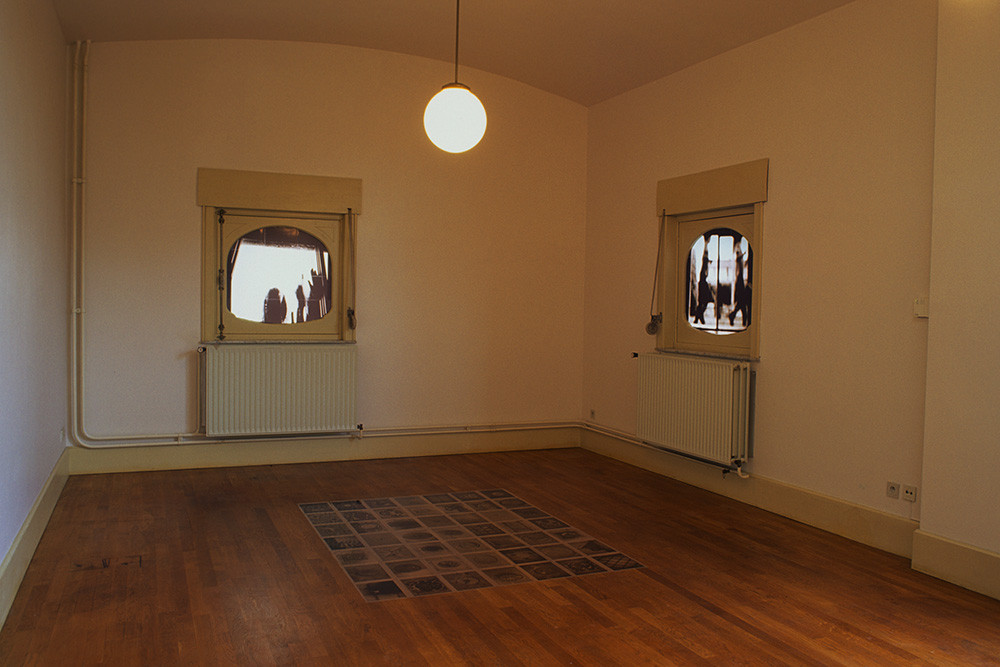 Les corps attendent pour entrer. L’accès au paysage est bloqué. Seul un tapis de signes urbains habite cet espace privé.